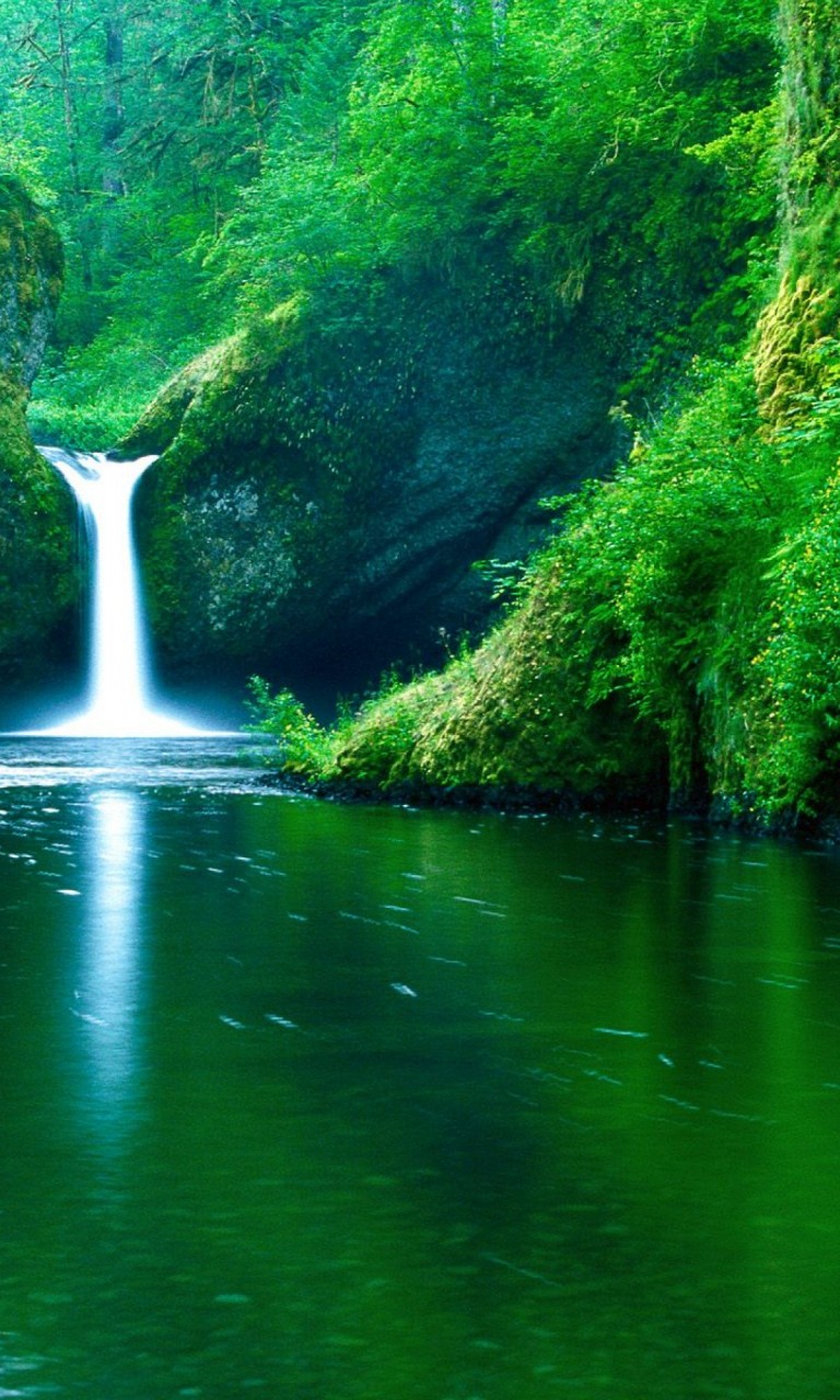 Green Waterfall Forest Wallpaper 048 - 768x1280
